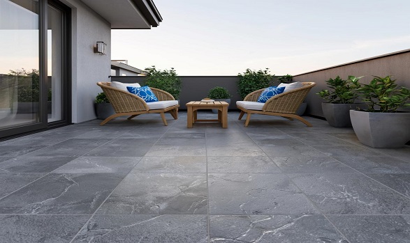 Снаружи зданий керамогранит незаменим для облицовки фасадов по технологии навесных вентилируемых систем, а также для мощения открытых площадок: террас, балконов, ступеней и садовых дорожек, где он успешно противостоит всем капризам погоды.